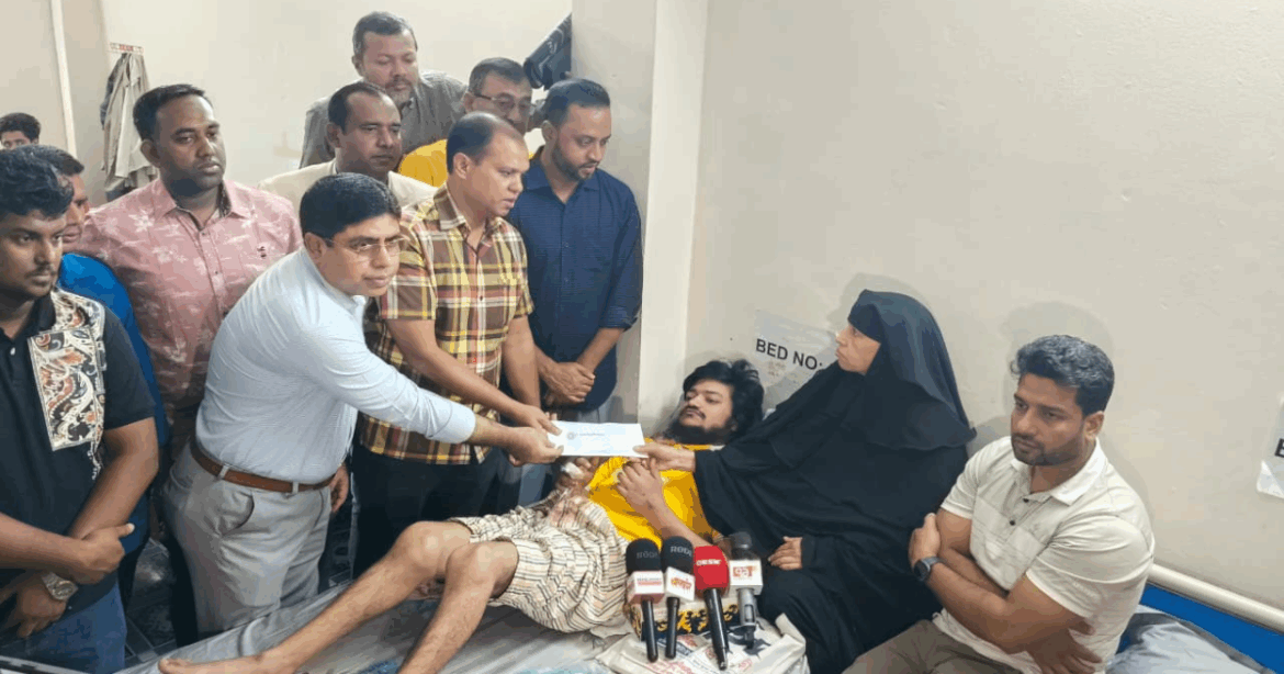 সাক্ষাৎ অনুষ্ঠানে ‘আমরা বিএনপি পরিবার’ আহবায়ক আতিকুর রহমান রুমন নেতৃত্বে অসহায় পরিবারটির হাতে চিকিৎসা সহায়তা তুলে দেয়া হয়।