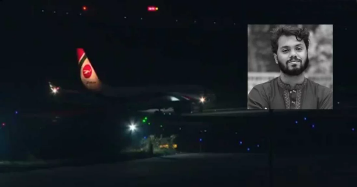 ঢাকা পৌঁছেছে সিঙ্গাপুর চিকিৎসাধীন অবস্থায় শেষ নিশ্বাস ত্যাগ করা ইনকিলাব মঞ্চ মুখপাত্র শরিফ ওসমান হাদির মরদেহ বহনকারী বিমান বাংলাদেশ এয়ারলাইন্সের ফ্লাইট বিজি৫৮৫।