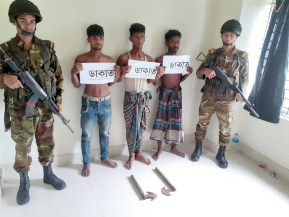 সেনাবাহিনীর ১৬ ফিল্ড রেজিমেন্ট আর্টিলারি ক্যাম্পের প্রেস বিজ্ঞপ্তিতে বলা হয়েছে, শুক্রবার দিবাগত রাত ১টার দিকে উপজেলার আন্ডারচর ইউনিয়নের আন্ডারচর গ্রামে ১৫–২০ জন ডাকাতদল দেশীয় অস্ত্রসহ প্রবেশ করে। বিষয়টি আঁচ করতে পেরে গ্রামবাসী তাদের ধাওয়া করে ৩ ডাকাতকে আটকে মারধর করে।