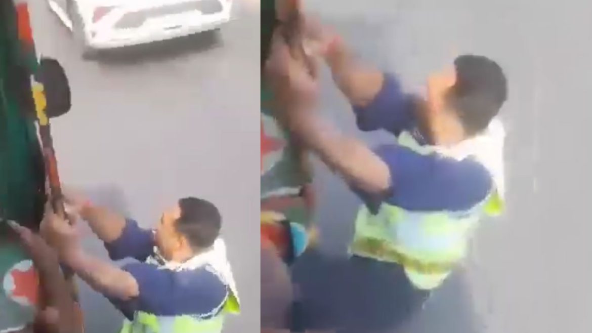 সামাজিক যোগাযোগ মাধ্যমে ছড়িয়ে পড়া ভিডিওতে দেখা যায়, একজন পুলিশ সদস্য ইউনিফর্ম পড়া অবস্থায় চলন্ত অটোরিকশার রড ধরে ঝুলে আছে। পেছনে কয়েকজন যাত্রী চালককে অনুরোধ করছেন অটোরিকশা থামানোর জন্য কিন্তু অটোরিকশা চালক থামাচ্ছে না। অটোরিকশার পাশ দিয়ে বিভিন্ন পরিবহন যাচ্ছে। পরবর্তীতে একটি স্থানে পৌঁছালে জ্যামে উপস্থিত স্থানীয় ও পুলিশ সদস্য মিলে চালককে আটক করে।