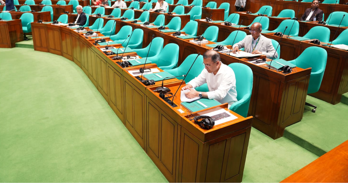ত্রয়োদশ জাতীয় সংসদের প্রথম অধিবেশনের (তৃতীয় দিন) মুলতবি অধিবেশন শুরু হওয়ার ৫ মিনিট আগে নিজের নির্ধারিত আসনে এসে বসেন প্রধানমন্ত্রী তারেক রহমান।