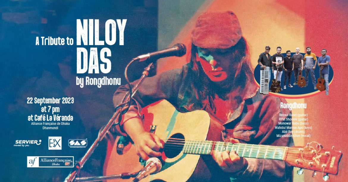 বাংলাদেশের কিংবদন্তি শিল্পী ও গিটারগুরু প্রয়াত নিলয় দাশের স্মরণে ২২ সেপ্টেম্বর রংধনু ব্যান্ডের উদ্যোগে সন্ধ্যায় রাজধানীর আঁলিয়স ফ্রঁসেজ’র ক্যাফে লা ভেরান্দায় একটি ট্রিবিউট শো অনুষ্ঠিত হতে যাচ্ছে।