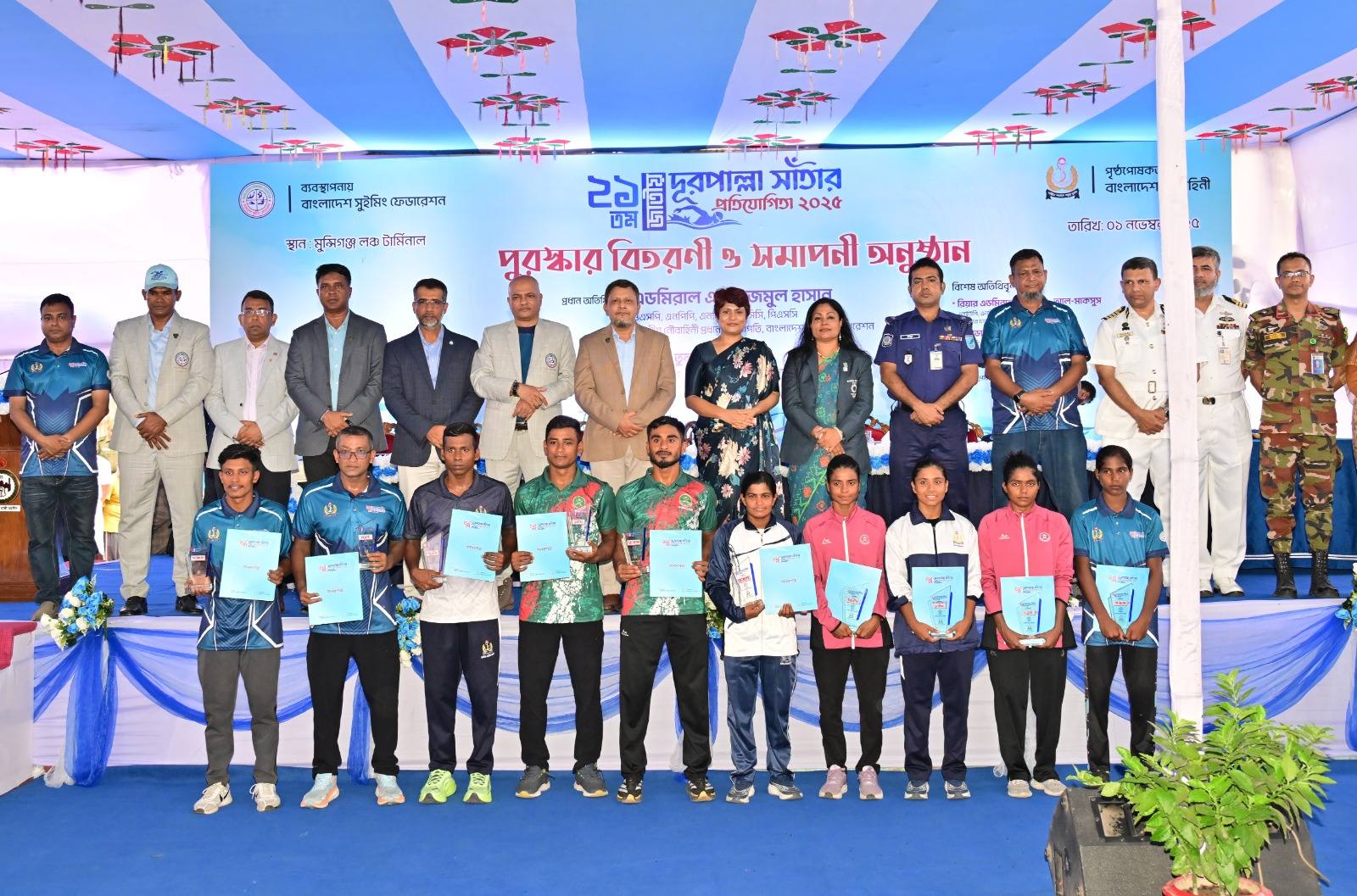 প্রতিযোগিতার পুরস্কার বিতরণ ও সমাপনী অনুষ্ঠান মুন্সীগঞ্জ লঞ্চঘাট টার্মিনাল স্মরণীতে অনুষ্ঠিত হয়। বাংলাদেশ সুইমিং ফেডারেশনের মাননীয় সভাপতি ও নৌবাহিনী প্রধান এডমিরাল এম নাজমুল হাসান প্রধান অতিথি হিসেবে বিজয়ীদের মাঝে পুরস্কার প্রদান করেন। প্রতিযোগিতায় বিজয়ী ও অংশগ্রহণকারীদের মাঝে ক্রেস্ট, সার্টিফিকেট ও আর্থিক পুরস্কার প্রদান করা হয়।