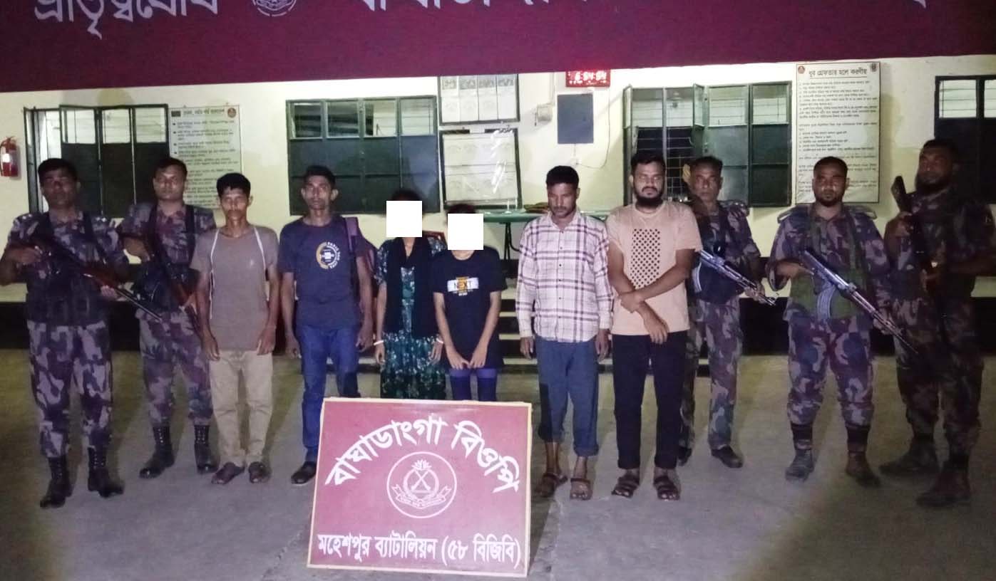 বিজিবি জানিয়েছে, মঙ্গলবার দিবাগত রাত পৌনে ১০টার দিকে মহেশপুর ৫৮ বিজিবি ব্যাটেলিয়নের অধীন কুসুমপুর বিওপির বিজিবি সদস্যরা সীমান্তের চাপাতলা এলাকায় অভিযান চালায়। এসময় স্থানীয় এক দালাল ও এক নারীকে আটক করে। এ ছাড়া বুধবার বেলা দেড়টার দিকে মাটিলা বিওপির পৃথক অভিযানে অবৈধভাবে ভারত হতে বাংলাদেশে আগমনকালে দুইজনকে আটক করে বিজিবি।