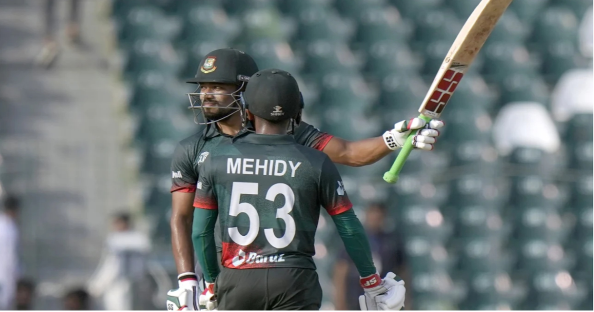 এরপর মিরাজশান্তর রূপকথার ব্যাটিং। তৃতীয় উইকেট জুটিতে তারা যোগ করেন ১৯৪ রান। ৬৫ বলে হাফসেঞ্চুরি পূরণ করেন মিরাজ। আফগান পেসার ফজলহক ফারুকিকে ছক্কা হাঁকিয়ে ফিফটি পূরণ করেন শান্ত। শেষ পর্যন্ত হাতে ব্যথা নিয়ে মিরাজ মাঠ ছাড়লে ভাঙে সেই জুটি। ১১৯ বলে ১১২ রান করে শেষ পর্যন্ত রিটায়ার হার্ট হয়ে মাঠ ছাড়েন মিরাজ।