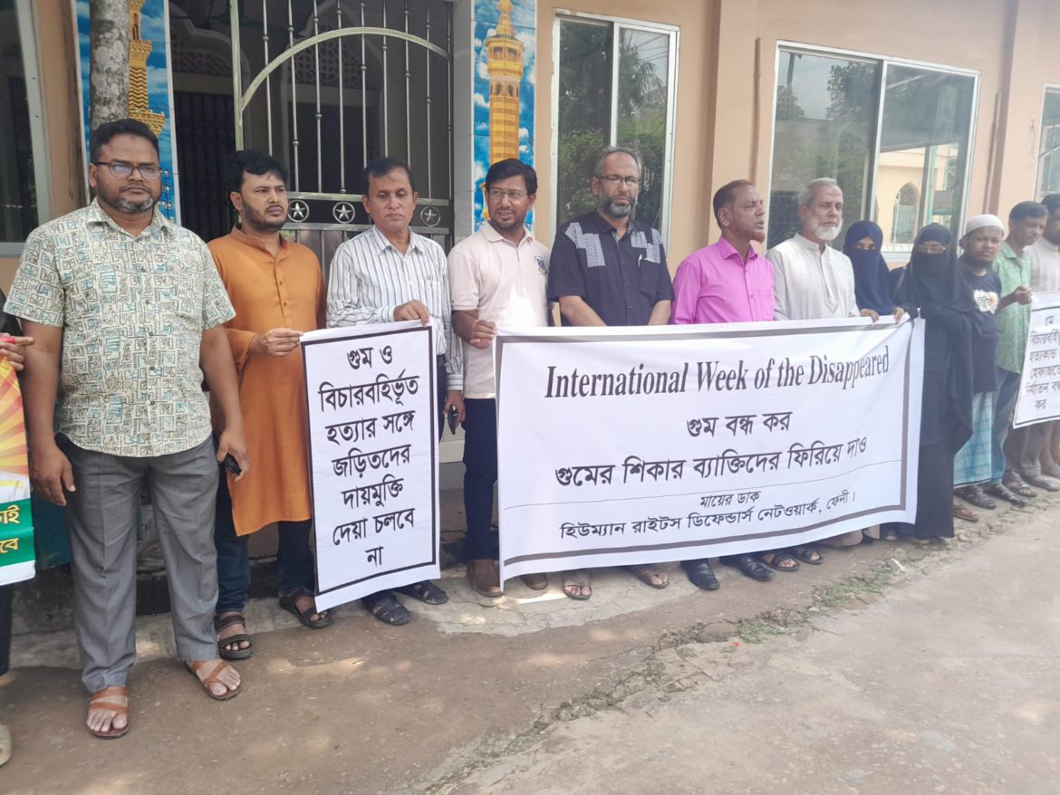 গুমের শিকার ব্যক্তিদের ফিরিয়ে দেওয়ার দাবিতে আর্ন্তজাতিক গুম সপ্তাহে ফেনীতে মানববন্ধন করেছে মানবাধিকার কর্মী ও গুমের স্বীকার হওয়া ব্যক্তির স্বজনরা।