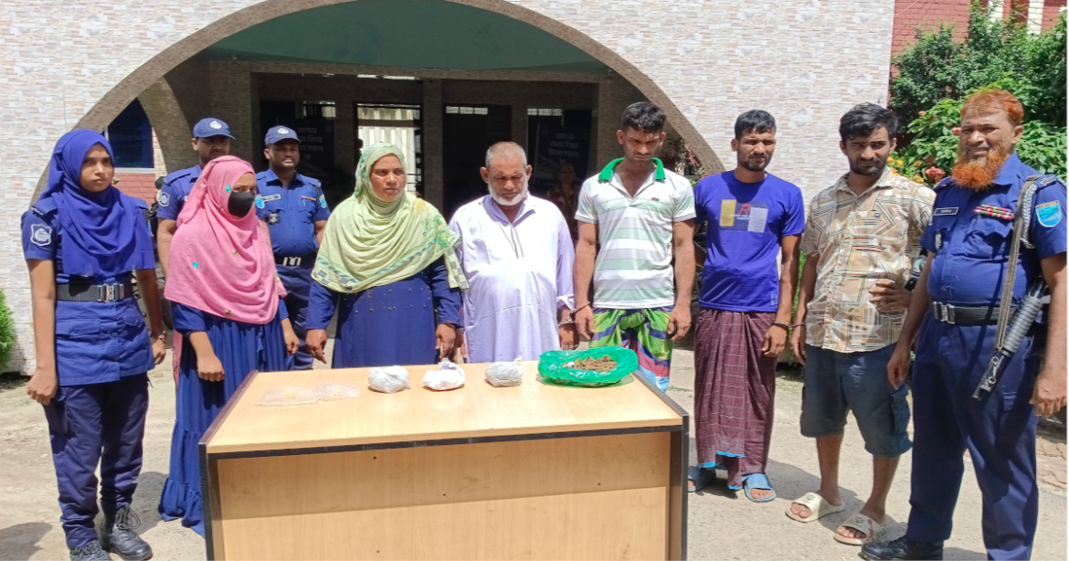 গ্রেপ্তারকৃতরা হলেন, মালখানগর এলাকা মজিবুর রহমান, মজিবুরের স্ত্রী, ছেলে জাহিদ হাসান, নাহিদ হাসান, নাহিদের স্ত্রী ও উপজেলার কাজীরভাগ এলাকার স্বপন হাওলাদারের ছেলে আশিক হাওলাদার।