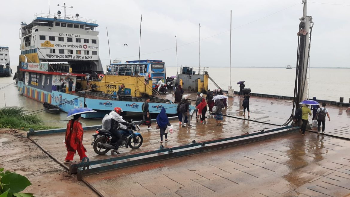 আরেক যাত্রী সফিক বিশ্বাস বলেন, বাস থেকে নেমে প্রায় কিলোমিটার পাঁয়ে হেঁটে ঘাটে আসতে হয়। এ সময় বৃষ্টিতে ভেজা ছাড়া উপায় নেই। দাড়ানোর মতোও পর্যাপ্ত জায়গা নেই। তারপর ঈদ আনন্দে এ এতটুকু কষ্ট মনে হচ্ছে না।