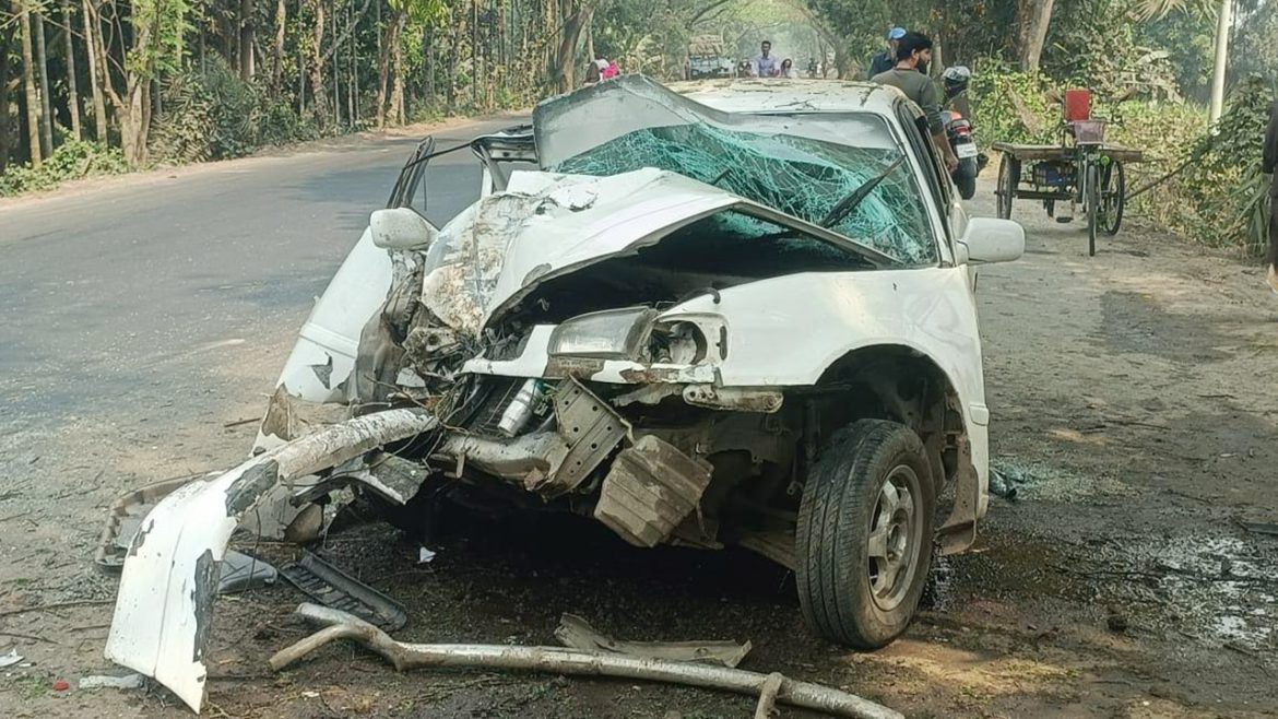 ঈদের ছুটিতে পরিবার নিয়ে যশোর থেকে বগুড়ায় গ্রামের বাড়ি ফেরার পথে নাটোরের লালপুরে সড়ক দুর্ঘটনায় বাবা ও মেয়ের নিহত এবং গুরতর আহত নিহতের স্ত্রী ও গাড়ি চালক।