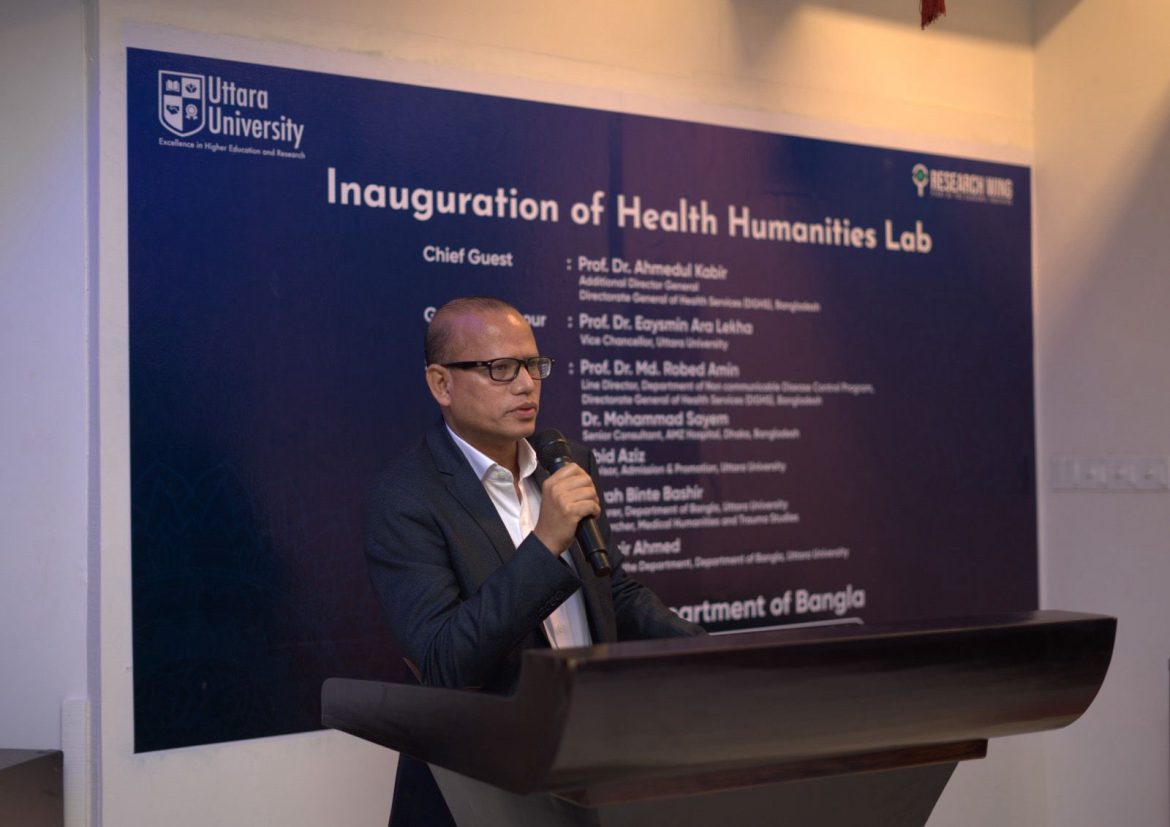 স্বাস্থ্য অধিদপ্তরের অতিরিক্ত মহাপরিচালক অধ্যাপক ডা. আহমেদুল কবির বলেছেন, ‘প্রেসক্রিপশনে রোগীকে এন্টিবায়োটিক না দিয়ে কতটা সুস্থ রাখা যায় এ ব্যাপারেই এই হেলথ হিউম্যানিটিজ ল্যাব আমাদেরকে সহায়তা করবে। আমি মনে করি উচ্চশিক্ষা কারিকুলামে মেডিকেল হিউম্যানিটিজ ও হেলথ হিউম্যানিটিজ বিষয়টি অন্তর্ভুক্ত করা এখন খুবই জরুরি এবং গুরুত্বপূর্ণ হয়ে দাঁড়িয়েছে। এই ক্ষেত্রে উচ্চশিক্ষাপ্রতিষ্ঠান হিসেবে উত্তরা ইউনিভার্সিটির সাহসী ভূমিকা খুবই প্রশংসার দাবি রাখে কারণ এই ইউনিভার্সিটিই প্রথম বাংলাদেশ তথা দক্ষিণ এশিয়াতে এমন একটি গুরুত্বপূর্ণ ল্যাব স্থাপনের মধ্য দিয়ে পাইওনিয়ার হিসেবে বিবেচিত হলো।‘