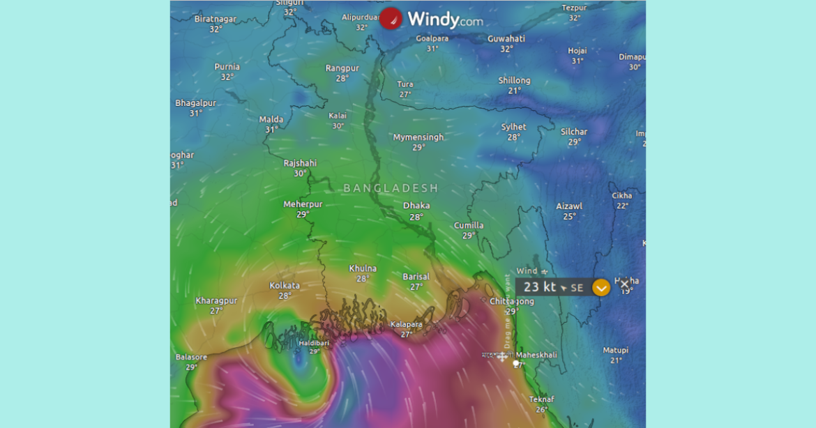 আজিজুর রহমান বলেন, ঘূর্ণিঝড়টি সন্ধ্যা ৬টা থেকে পরবর্তী ৪ থেকে ৫ ঘণ্টায় বাগেরহাটের মংলা ও পটুয়াখালির খেপুপাড়া দিয়ে অতিক্রম করবে। ঘুর্ণিঝড়টির অগ্রভাগ উপকূলে প্রবেশ করায় পটুয়াখালিতে বাতাসের বেগ ঘণ্টায় ৭২ কিলোমিটার আর মংলায় ৫৭ কিলোমিটার।’