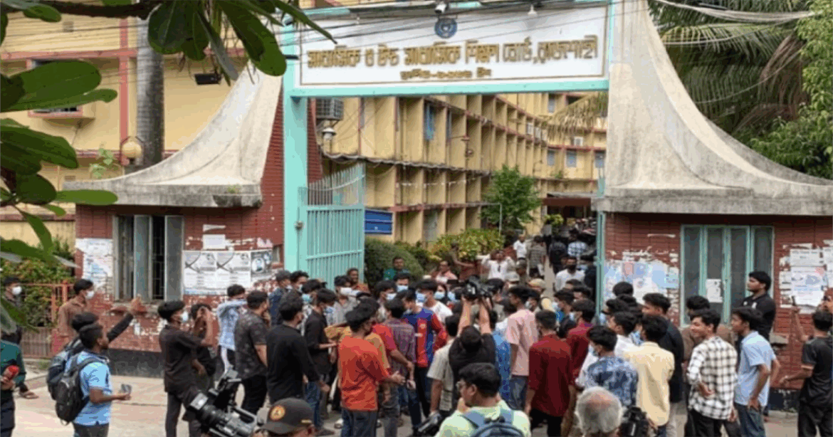 করোনা সংক্রমণ বেড়ে যাওয়ায় এইচএসসি পরীক্ষা অন্তত দুই মাস পেছানোর দাবিতে রাজশাহী শিক্ষা বোর্ডে বিক্ষোভ করে একদল শিক্ষার্থী। এসময় তারা শিক্ষা বোর্ডের মূল ফটকে তালা ঝুুলিয়ে দেয়।