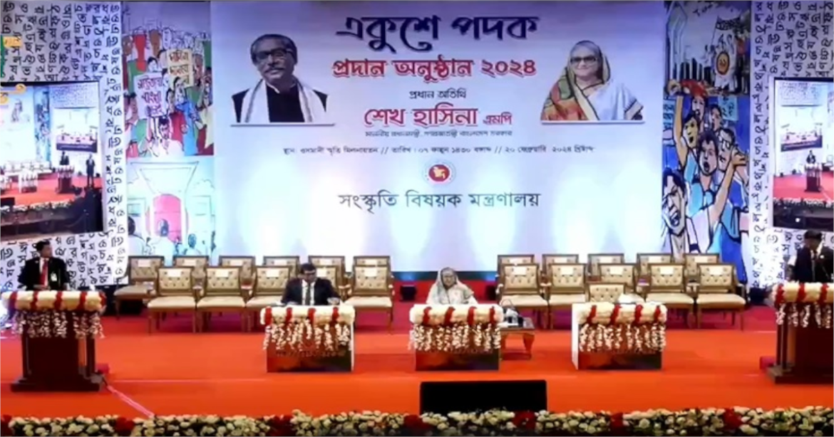 অমর একুশে ও আন্তর্জাতিক মাতৃভাষা দিবস উপলক্ষ্যে ২১ জন বিশিষ্ট ব্যক্তির হাতে ‘একুশে পদক ২০২৪’ তুলে দিয়েছেন প্রধানমন্ত্রী শেখ হাসিনা।