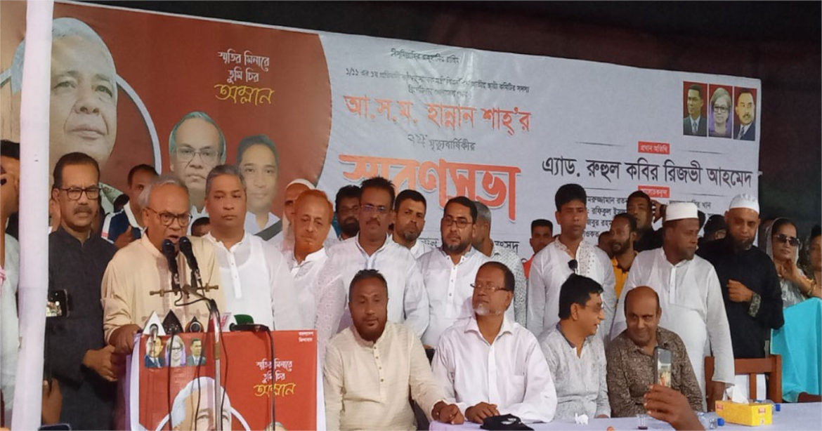 শনিবার (৩০ সেপ্টেম্বর) বিকেলে গাজীপুরের কাপাসিয়ার ঘাগটিয়া চালা মাঠে বিএনপির সাবেক মন্ত্রী ও স্থায়ী কমিটির সদস্য আ স ম হান্নান শাহ‘র ৭ম মৃত্যুবার্ষিকী ও স্মরণসভায় এ মন্তব্য করেন।