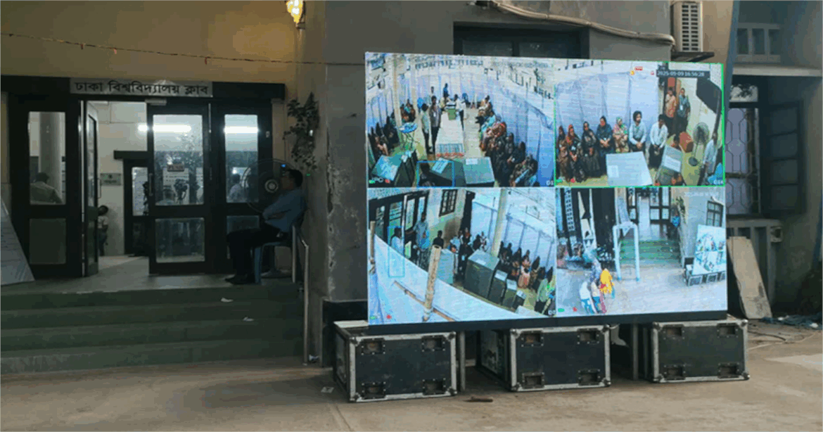 স্বচ্ছতা নিশ্চিতে ঢাকা বিশ্ববিদ্যালয় প্রশাসন বিকাল পৌনে ৫টার দিকে প্রতিটি কেন্দ্রের বাইরে থাকা এলইডি স্ক্রিন একে একে চালু করা হয়।