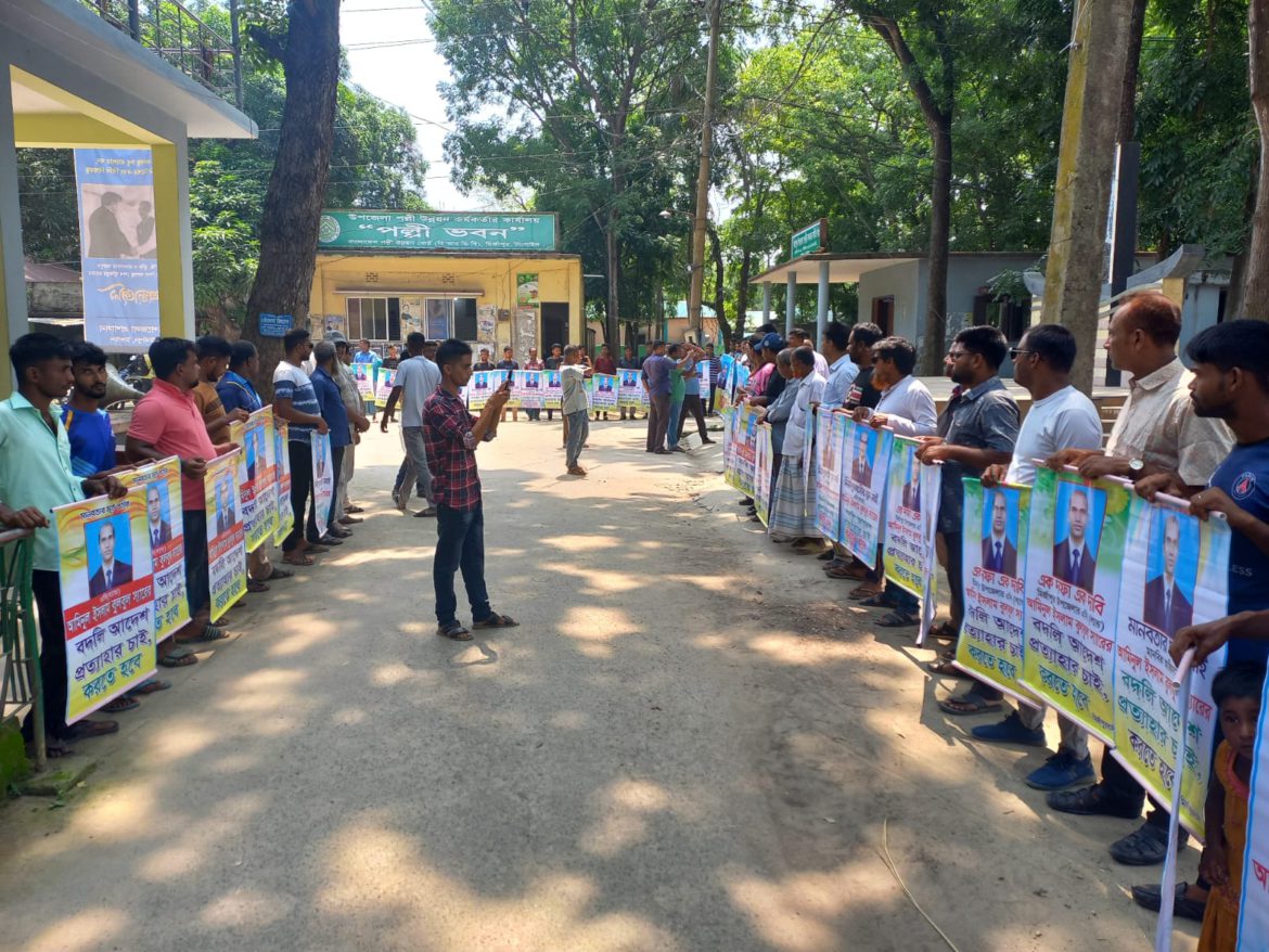 মানববন্ধনে দেখা যায়, উপজেলার বিভিন্ন এলাকার চিহ্নিত একাধিক মাটি ব্যবসায়ীরা এক দফা, এক দাবি আমিনুল ইসলাম বুলবুল স্যারের বদলি আদেশ প্রত্যাহার চাই, করতে হবে এমনসব ব্যানার নিয়ে উপস্থিত ছিলেন। উপজেলার নরদানা আশ্রয়ন প্রকল্পের সুবিধাভোগী লতা বেগম বলেন, স্যারের লোকেরা আমাদের হাতে ব্যানার ধরিয়ে দিয়ে মানববন্ধনে আসতে বলেছে, তাই এসেছি।