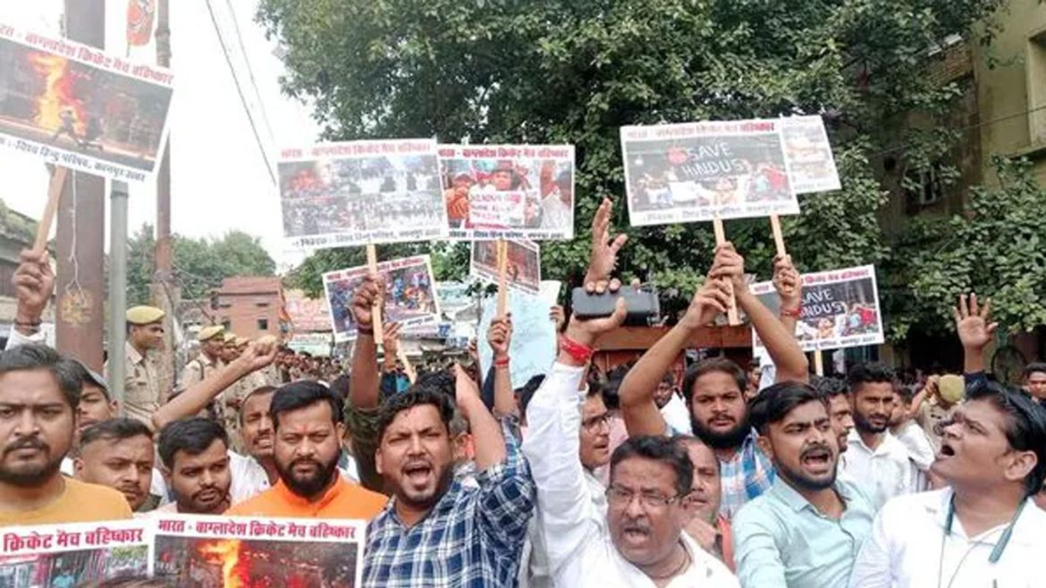 ভারতীয় গণমাধ্যম হিন্দুস্তান লাইভ তাদের এক খবরে জানায়, গ্রিনপার্ক স্টেডিয়ামের বাইরে বাংলাদেশের পতাকা পুড়িয়ে দেয় বিশ্ব হিন্দু পরিষদ নামের একটি সংগঠন। ম্যাচ শুরুর পর থেকে স্টেডিয়ামের বাইরে জড়ো হয়ে স্লোগান দেন তারা। বাংলাদেশের হিন্দুদের নিরাপত্তা চেয়ে পোস্টার হাতে দেখা গিয়েছিল অনেককেই।