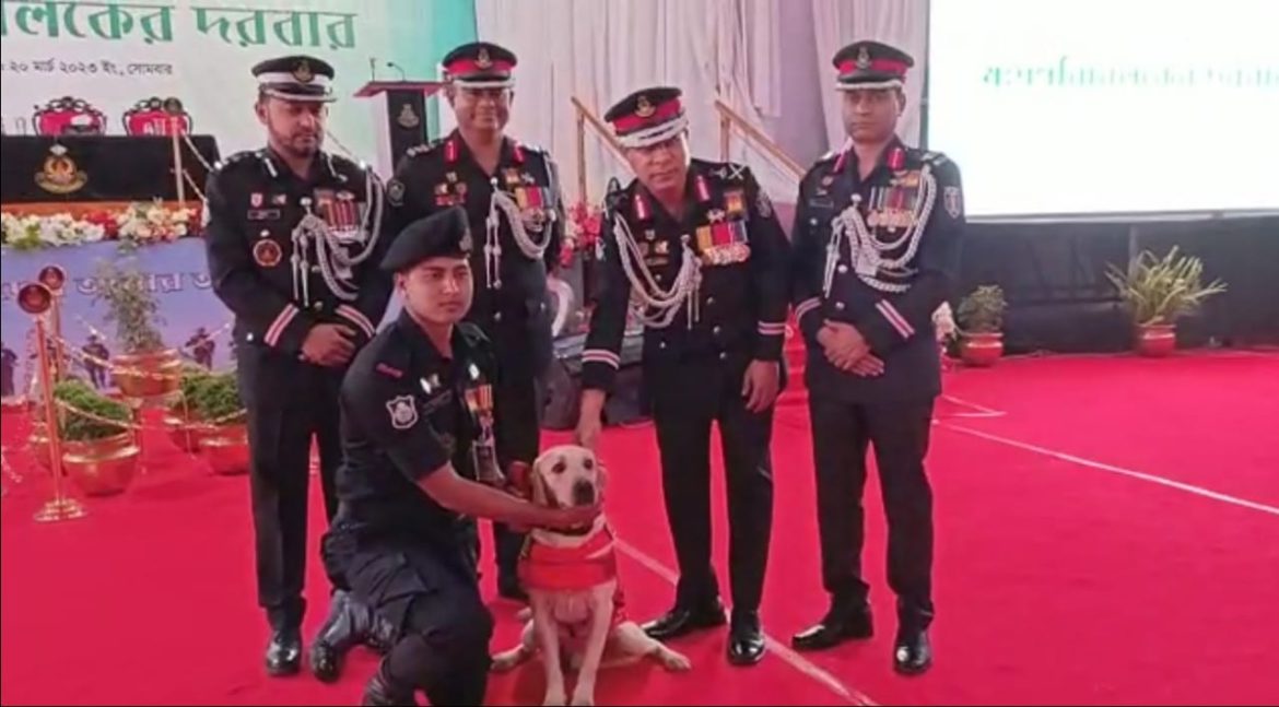 দেশে প্রথমবারের মতো ডগ স্কোয়াডের একটি কুকুর বীরত্বপূর্ণ কাজের জন্য র্যাবের মহাপরিচালক পদক পেল। সোমবার (২০ মার্চ) র্যাব সদর দফতরে এ পদক দেয়া হয়।