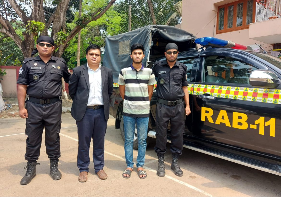 সোমবার (২৭ মার্চ ) সকালে নগরীর শাকতলা র্যাব কার্যালয়ে এক সংবাদ সম্মেলনে এ তথ্য জানান র্যাব-১১ সিপিসি-২ এর কোম্পানি অধিনায়ক মেজর মোহাম্মদ সাকিব হোসেন।