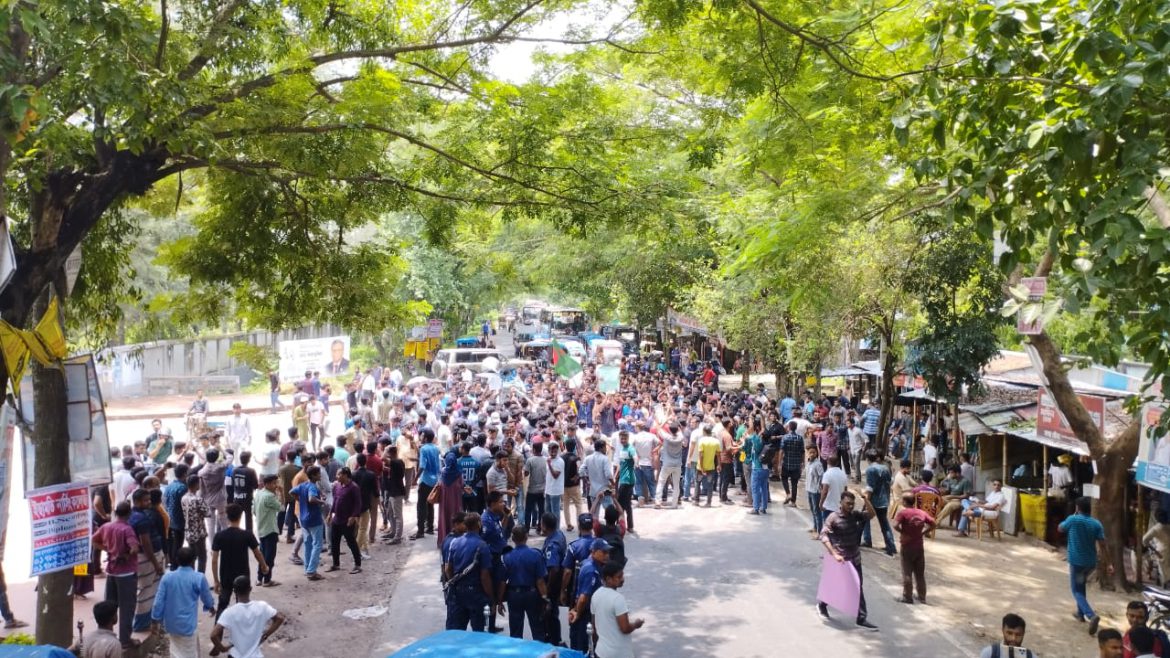 শনিবার (৬ জুলাই) বেলা সাড়ে ১১টার দিকে বিশ্ববিদ্যালয়ের প্রধান ফটকের সামনে ঢাকাপাবনা মহাসড়ক অবরোধ করে বিক্ষোভ শুরু করেন তারা। প্রায় এক ঘন্টা এই অবরোধ চলে। এতে দুইপাশে যান চলাচল বন্ধ হয়ে যায়। পরে প্রশাসনের অনুরোধে ক্যাম্পাসে ফিরে যান শিক্ষার্থীরা।