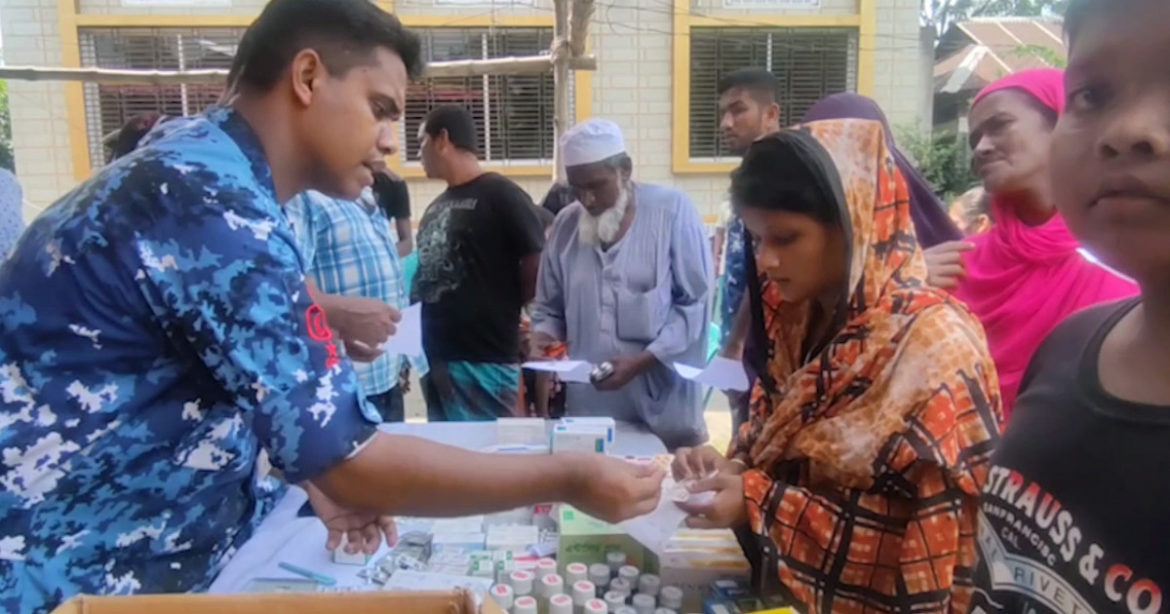মুন্সীগঞ্জের লৌহজং পদ্মা পাড়ে কর্মহীন ও দুঃস্থ মানুষের মাঝে বিনামূল্যে ঔষধ ও চিকিৎসাসেবা কার্যক্রম করেছে বাংলাদেশ কোষ্টগার্ড।