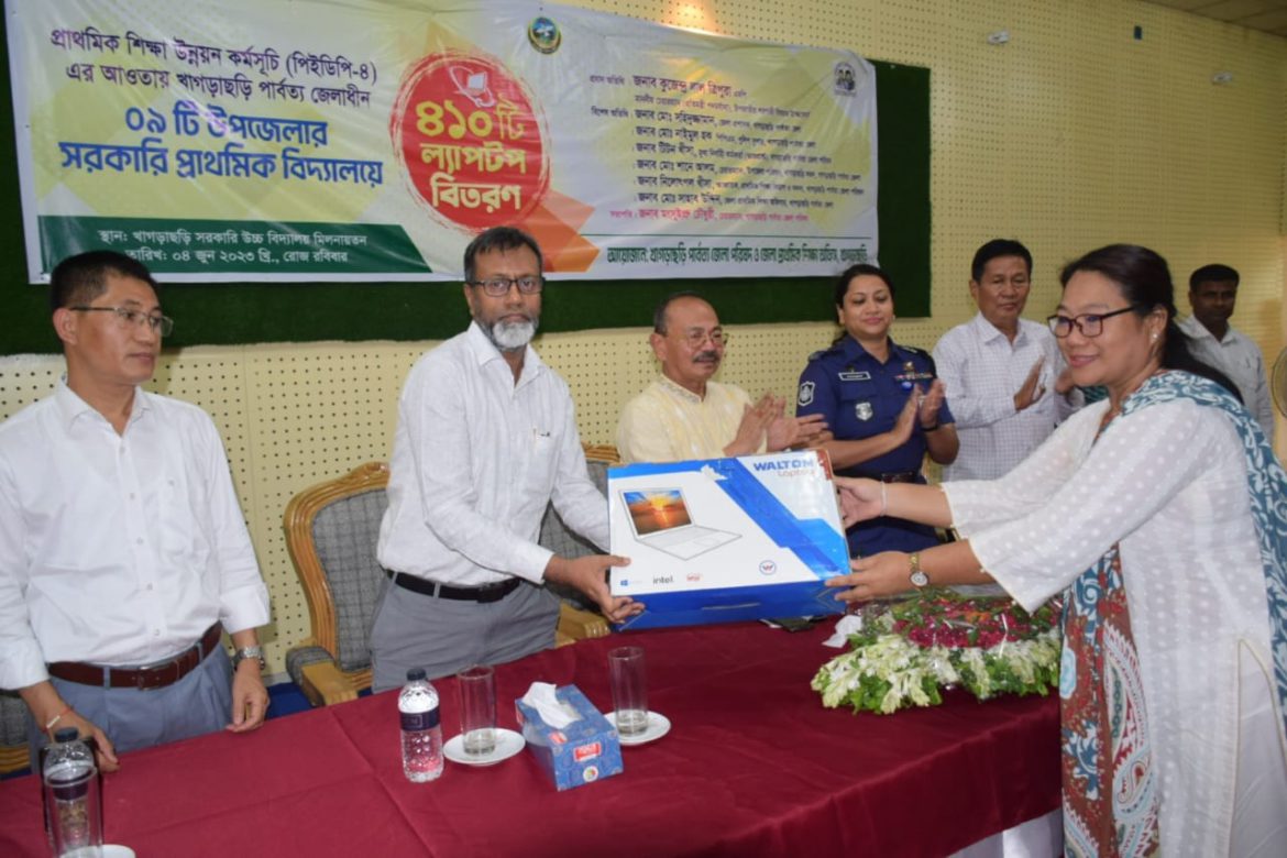 খাগড়াছড়ির ৯টি উপজেলার মোট ৪১০টি সরকারি প্রাথমিক বিদ্যালয়ে ল্যাপটপ বিতরণ করা হয়েছে। প্রাথমিক শিক্ষা উন্নয়ন কর্মসূচির আওতায় এসব ল্যাপটপ দেয়া হয়।