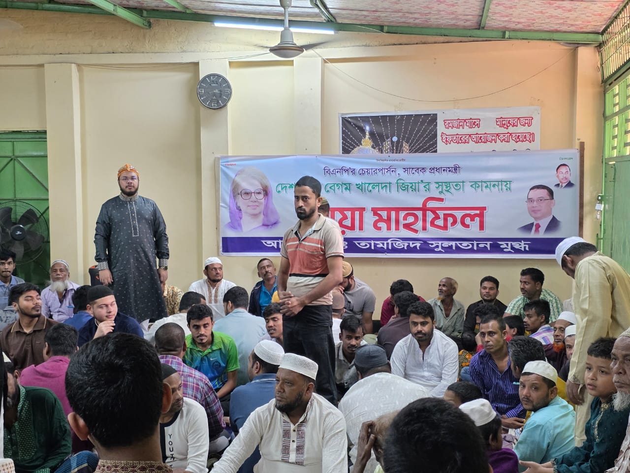 বিএনপি চেয়ারপারসন দেশনেত্রী বেগম খালেদা জিয়ার রোগমুক্তি কামনায় মিরপুরে বিএনপি নেতা অ্যাডভোকেট তামজিদ সুলতান মুগ্ধ দোয়া ও মিলাদ মাহফিলের আয়োজন করেন।