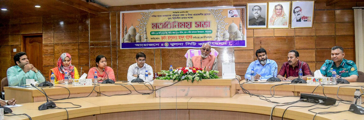 খুলনায় পবিত্র রমজানের পবিত্রতা রক্ষা ও নিত্যপ্রয়োজনীয় দ্রব্যের মূল্য স্থিতিশীল রাখার লক্ষ্যে ব্যবসায়িদের সাথে মতবিনিময় সভা করেছেন কেসিসি মেয়র তালুকদার আব্দুল খালেক। বৃহস্পতিবার (১৬ মার্চ) রাতে খুলনা সিটি কর্পোরেশন শহীদ আলতাফ হোসেন মিলনায়তনে মেয়র তালুকদার আব্দুল খালেকের সভাপতিত্বে এই মতবিনিময় সভা অনুষ্ঠিত হয়।