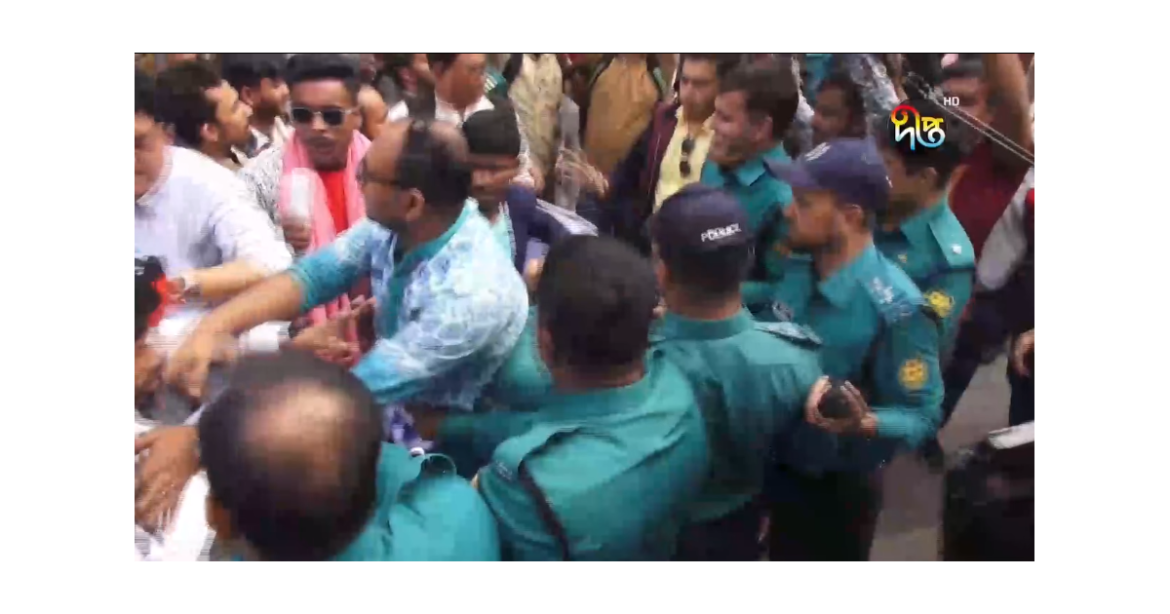 নির্বাচন বর্জনের দাবিতে গণতন্ত্র মঞ্চের গণসংযোগ ও প্রচারপত্র বিলি কর্মসূচিতে পুলিশের বাধা ও উভয়পক্ষের সাথে ধস্তাধস্তির ঘটনা ঘটেছে।