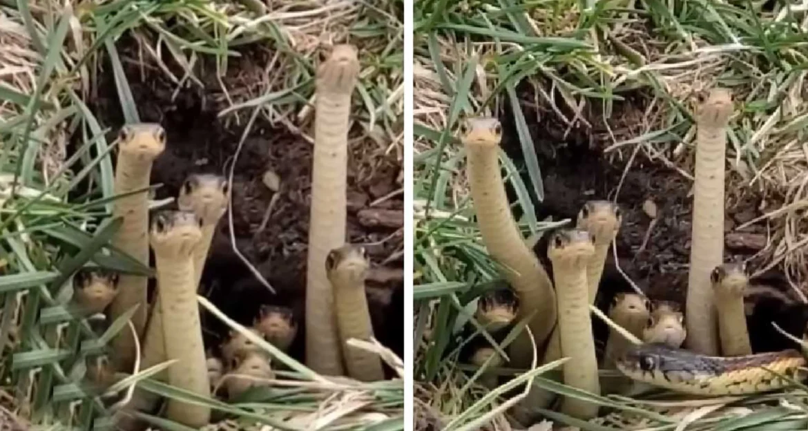 সম্প্রতি নেটমাধ্যমে আসা একটি ভিডিওতে দেখা যায় বিস্ময়কর দৃশ্য। গর্ত থেকে উঁকি দিচ্ছে সাপ। একটি নয় দুটি নয় পুরো সাপের একটি পরিবার। তবে ঘটনাটি কোথায় ঘটেছে তা এখনো জানা যায়নি।