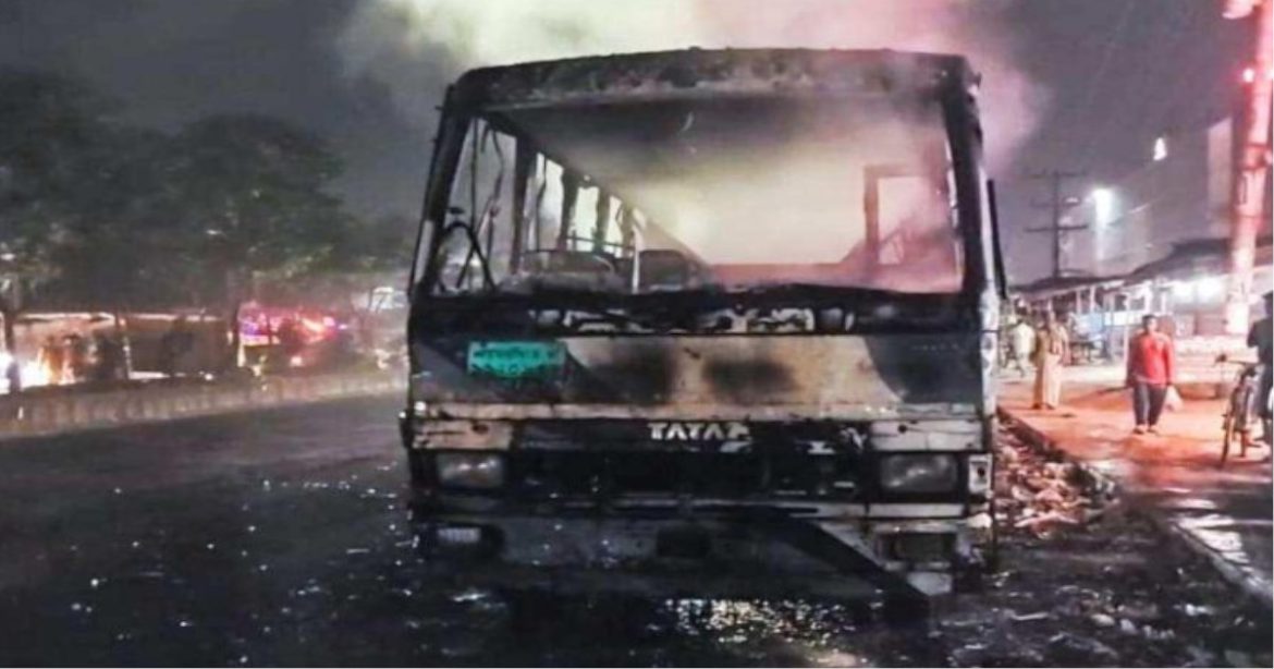 গাজীপু‌রে পৃথকস্থা‌নে দু‌টি যাত্রীবাহী ‌মি‌নিবা‌সে আগুন দি‌য়ে‌ছে দুর্বৃত্তরা । ঢাকাটাঙ্গাইল মহাসড়‌কের স‌ফিপু‌রে এবং ঢাকাময়মন‌সিংহ মহাসড়‌কের জৈনাবাজার এলাকায় তাকওয়া প‌রিবহ‌নের দু‌টি বা‌সে আগুন দি‌য়ে জ্বা‌লি‌য়ে দেয়।