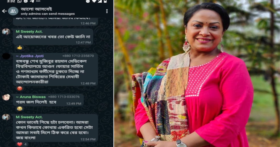 গোপনে দেশ ছেড়েছেন বৈষম্যবিরোধী ছাত্র আন্দোলনে শিক্ষার্থীদের ওপর ‘গরম পানি ঢালার’ পরমর্শ দেওয়া অভিনেত্রী অরুণা বিশ্বাস।