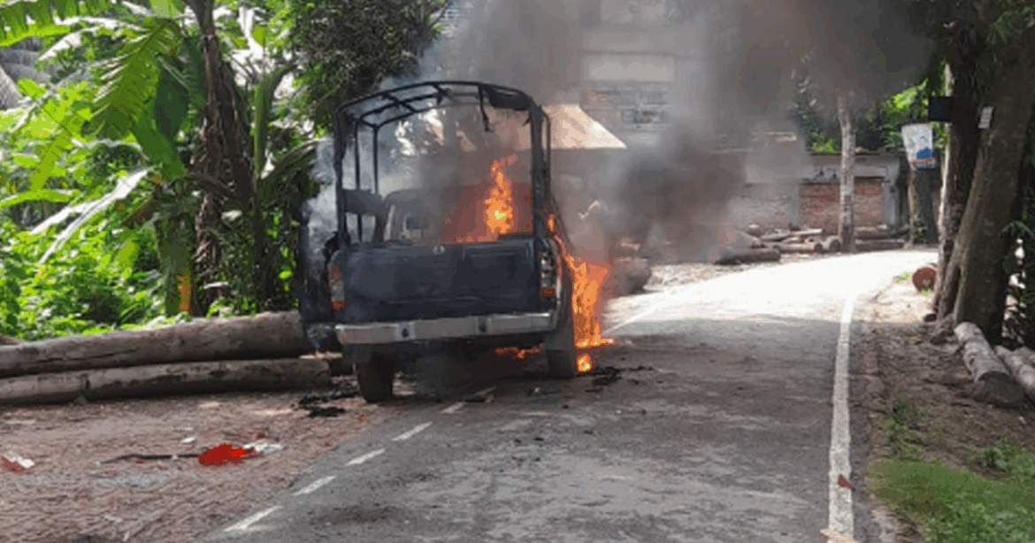 গোপালগঞ্জ শহরে পুলিশের গাড়িতে আগুন