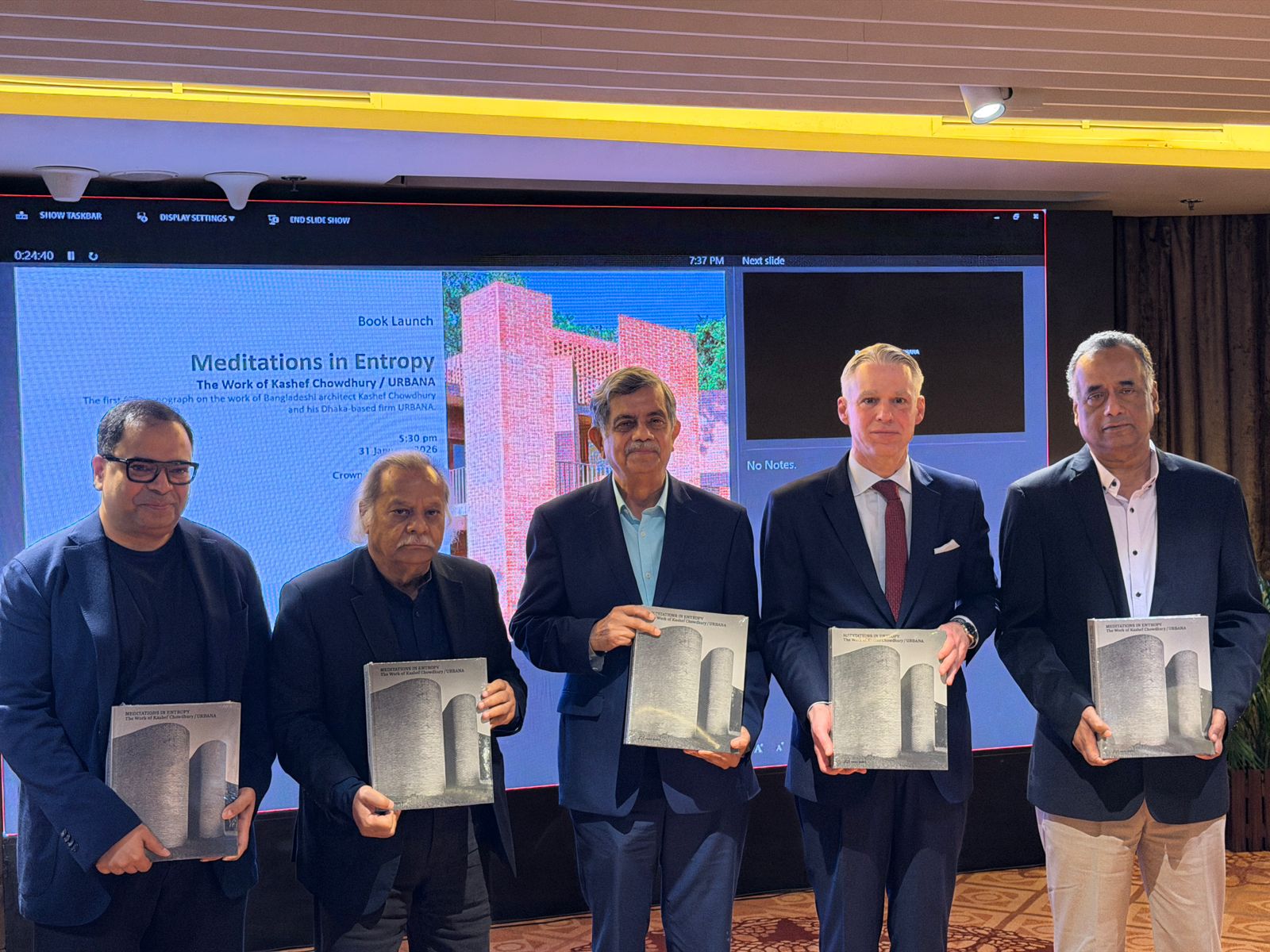 আগা খান পুরস্কারপ্রাপ্ত, আন্তর্জাতিক খ্যাতিসম্পন্ন বাংলাদেশি স্থপতি কাশেফ মাহবুব চৌধুরী তার নতুন মনোগ্রাফ Meditations in Entropy: The Work of Kashef Chowdhury / URBANA–এর গ্রন্থ উন্মোচন অনুষ্ঠানে স্থাপত্যকে জলবায়ু, ভূ–প্রকৃতি এবং সমষ্টিগত স্মৃতির প্রতি এক গভীর ও সংবেদনশীল প্রতিক্রিয়া হিসেবে তুলে ধরেছেন।