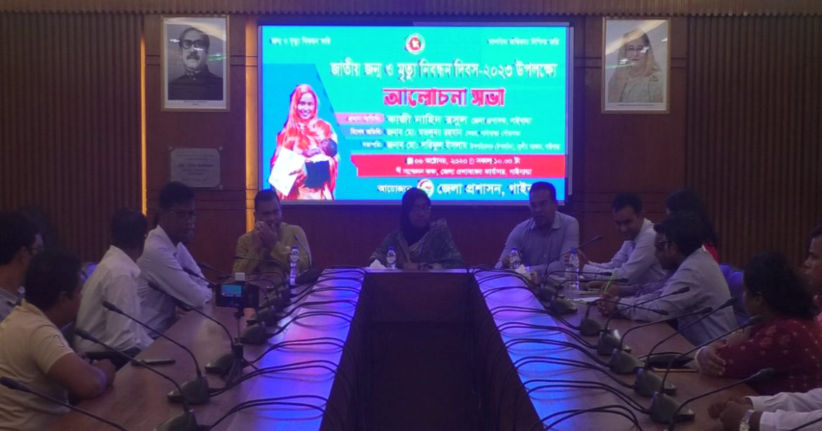 জাতীয় জন্ম ও মৃত্যু নিবন্ধন দিবস উপলক্ষ্যে গাইবান্ধা জেলা প্রশাসনের উদ্যাগে জেলা কালেক্টরেট সম্মেলন কক্ষে এক আলোচনা সভা অনুষ্ঠিত হয়। অনুষ্ঠানে প্রধান অতিথি ছিলেন জেলা প্রশাসক কাজী নাহিদ রসুল।
