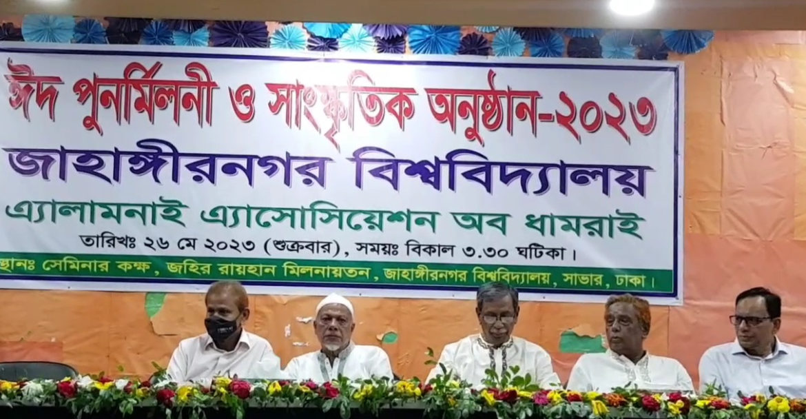 জাহাঙ্গীরনগর বিশ্ববিদ্যালয় অ্যালামনাই অ্যাসোসিয়েশন অব ধামরাইয়ের ঈদ পুনর্মিলনী ও সাংস্কৃতিক অনুষ্ঠান অনুষ্ঠিত হয়েছে। শুক্রবার (২৬ মে) বিকেলে বিশ্ববিদ্যালয়ের জহির রায়হান অডিটোরিয়ামে এ অনুষ্ঠান হয়।