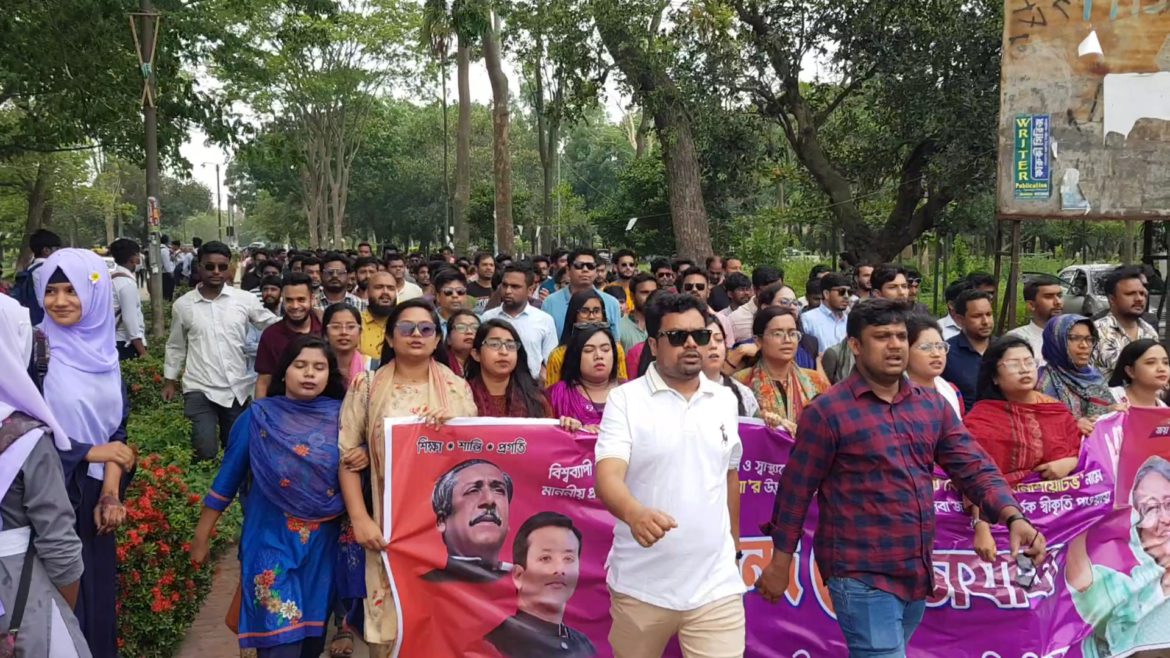 প্রধানমন্ত্রী শেখ হাসিনার উদ্ভাবন কমিউনিটি ক্লিনিককে জাতিসংঘ ‘দ্য শেখ হাসিনা ইনিশিয়েটিভ’ হিসেবে স্বীকৃতি দেওয়ায় আনন্দ শোভাযাত্রা করেছে জাহাঙ্গীরনগর বিশ্ববিদ্যালয় শাখা ছাত্রলীগ৷ মঙ্গলবার (২৩ মে) দুপুরে বিশ্ববিদ্যালয়ের পরিবহন চত্বর থেকে একটি আনন্দ শোভাযাত্রা বের হয়ে বিশ্ববিদ্যালয়ের কয়েকটি সড়ক প্রদক্ষিণ করে প্রধান ফটকে গিয়ে শেষ হয়।