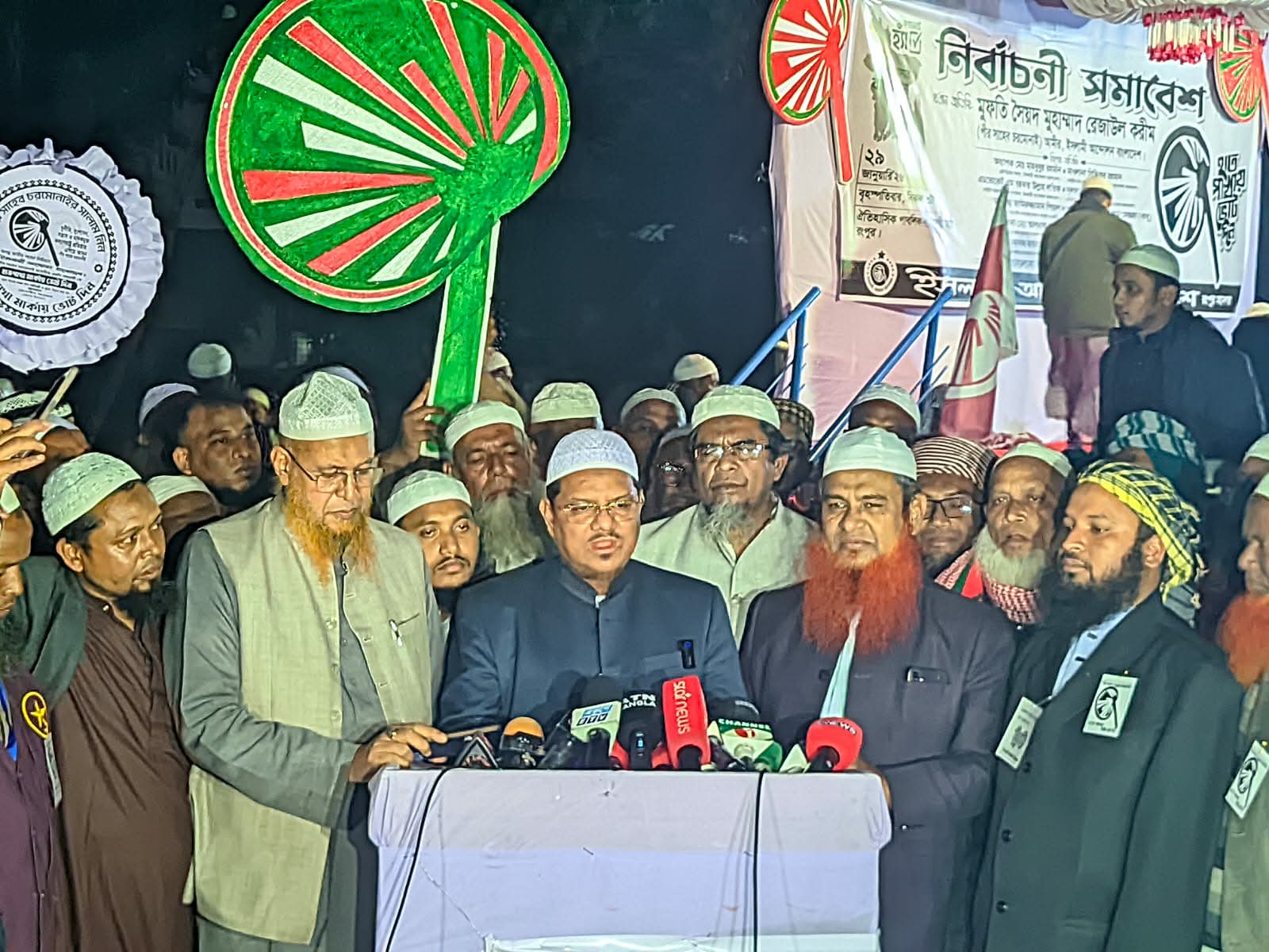 মুফতি সৈয়দ মুহাম্মদ রেজাউল করিম বলেন, জামায়াত ইসলাম কে রাষ্ট্রীয় পর্যায়ে নিতে চায় না, তখনই বাধ্য হয়ে আমরা সেখান থেকে সরে এসে আমরা জাতির সামনে যে কথা দিয়েছিলাম, সেই কথামতো হাতপাখা প্রতীকে আমরা ইসলামের একটা বাক্স জাতির সামনে রেখেছি। আশা করি ইসলামের পথে রাখা বাক্সই বিজয়ী হবে ইনশাআল্লাহ। যারা মানবতার মুক্তি চায়, যারা ইসলাম কায়েম করতে চায়, বিশেষ করে আলেম ওলামা হাত পাখার সাথে আছে। তারা হাতপাখাকে বিজয়ী করতে মুখিয়ে আছে।