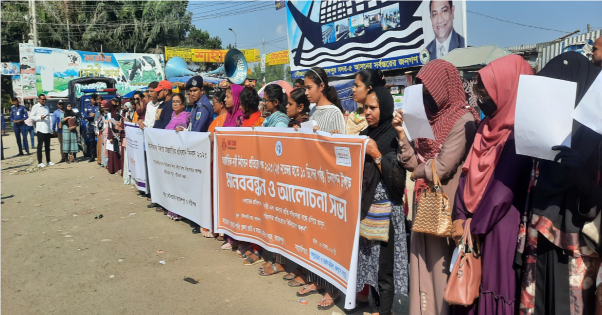 শনিবার (২৫ নভেম্বর) দুপুরে শহরের ফৌজদারী চত্বরে আমরাই পারি জেলা জোট ও সমমনা এনজিওরআয়োজনে এবং গণচেতনা ও তরঙ্গ মহিলা কল্যাণসংস্থার সহযোগিতায় এ মানববন্ধন ও আলোচনা সভা অনুষ্ঠিত হয়।