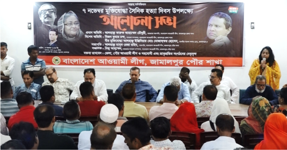 জামালপুরে মুক্তিযোদ্ধা সৈনিক হত্যা দিবস উপলক্ষ্যে আওয়ামী লীগের আলোচনা সভা অনুষ্ঠিত হয়েছে।