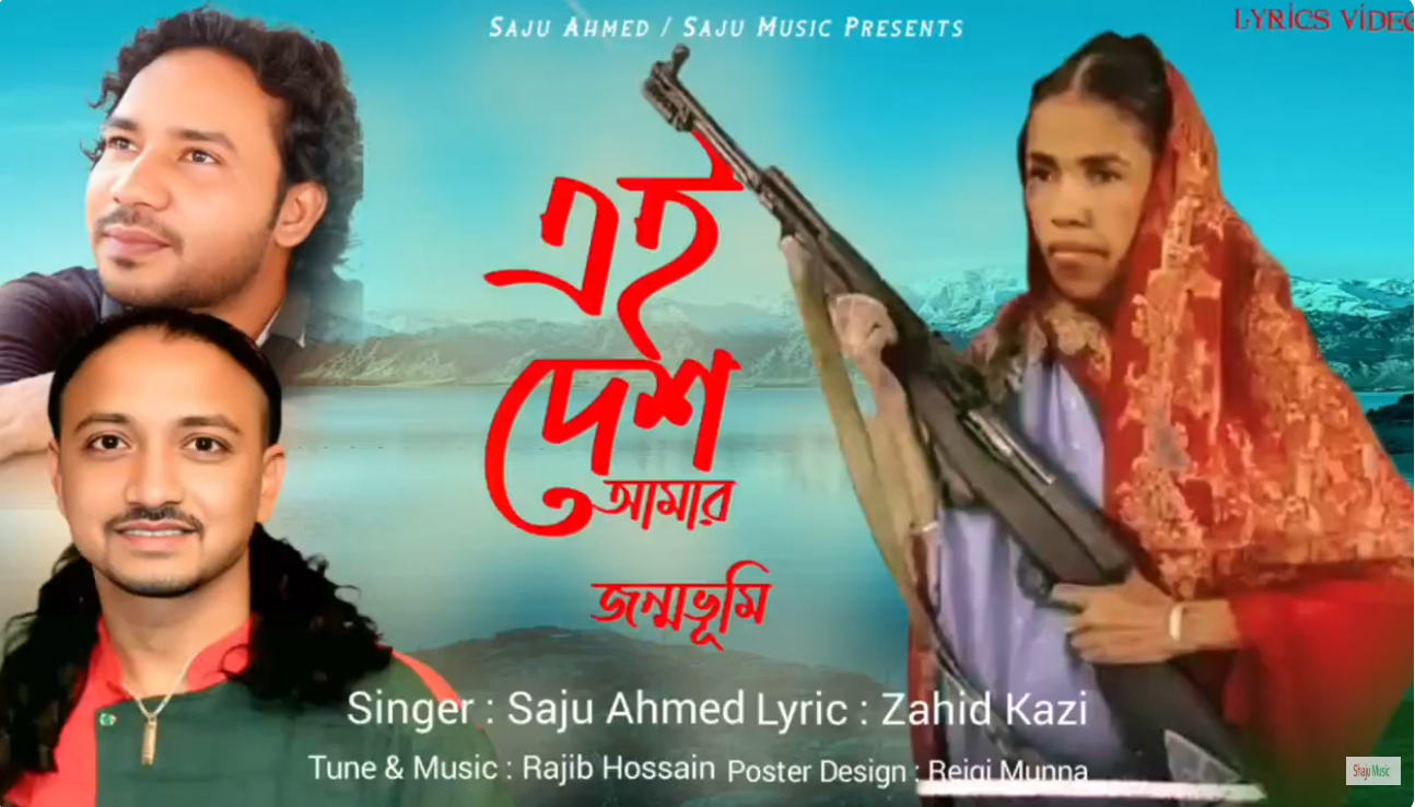 বছরের শেষদিকে ‘এই দেশ আমার জন্মভূমি’ শিরোনামে দেশের গান নিয়ে হাজির হলেন ক্লোজআপ ওয়ান তারকা কণ্ঠশিল্পী সাজু আহমেদ। গানটির কথা লিখেছেন কবি জাহিদ কাজী। নতুন দেশের এ গানটির সুর ও চমৎকার সংগীতায়োজন করেছেন সংগীতপরিচালক রাজীব হোসেন।