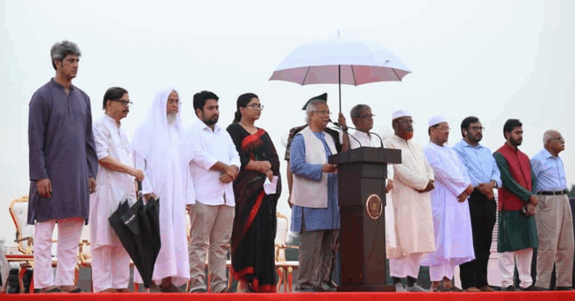 জাতির সামনে আনুষ্ঠানিকভাবে জুলাই গণঅভ্যুত্থানের দলিল ‘জুলাই ঘোষণাপত্র’ পাঠ করেছেন প্রধান উপদেষ্টা ড. মুহাম্মদ ইউনূস।