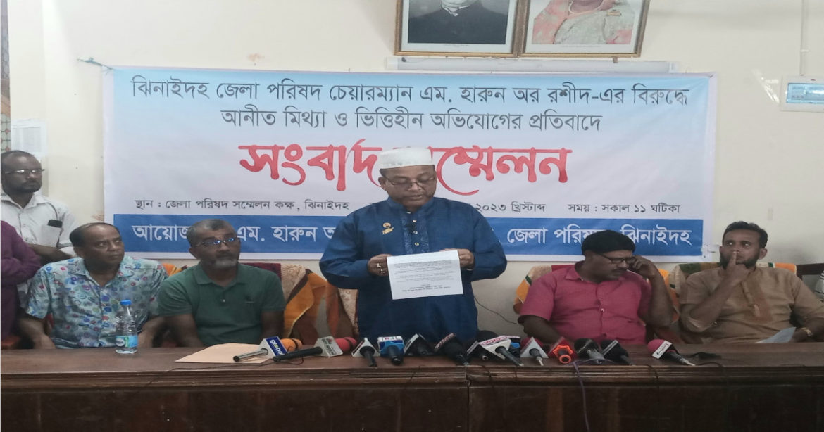 ঝিনাইদহ জেলা পরিষদের চেয়ারম্যান হারুন অর রশিদের বিরুদ্ধে অপপ্রচারের প্রতিবাদে সংবাদ সম্মেলন করা হয়েছে।