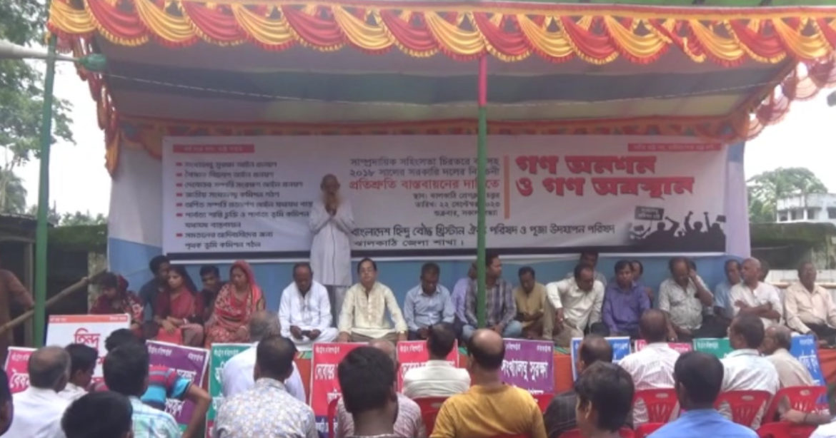 কেন্দ্রীয় কর্মসূচির অংশ হিসেবে ঝালকাঠিতে হিন্দু বৌদ্ধ খ্রিস্টান ঐক্য পরিষদ ডাকে গণঅনশন কর্মসূচি পালিত হয়েছে।