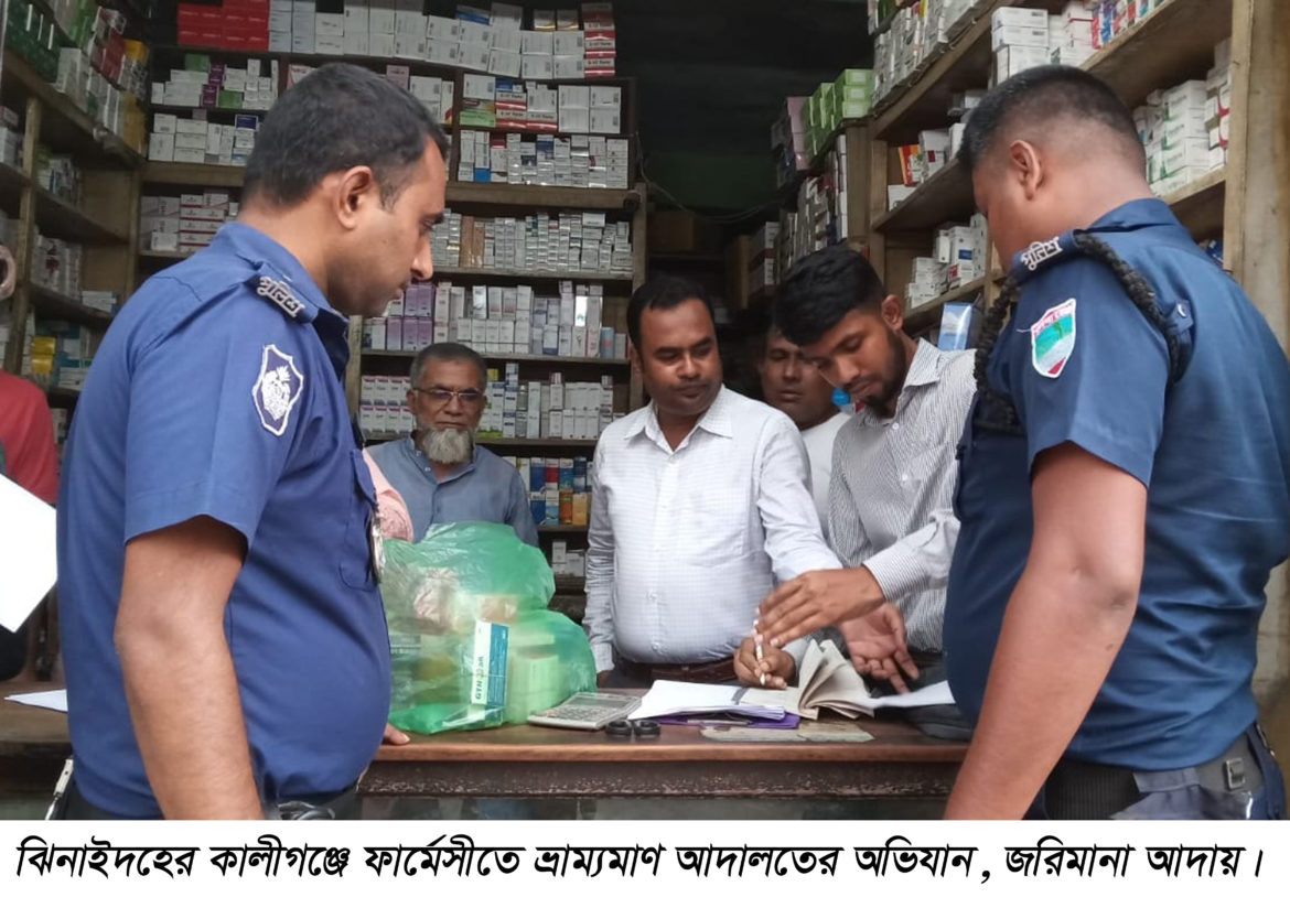 ঝিনাইদহের কালীগঞ্জ শহরের তিনটি ফার্মেসীতে ভ্রাম্যমাণ আদালত অভিযান চালিয়ে জরিমানা আদায় করেছে।