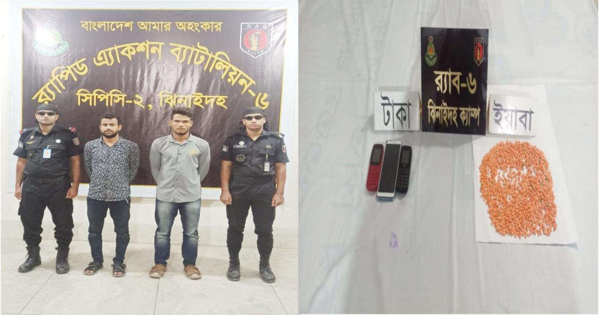ঝিনাইদহে ১৪৮০ পিচ ইয়াবাসহ ২ মাদক কারবারিকে গ্রেফতার করেছে র‌্যাব ৬ ।