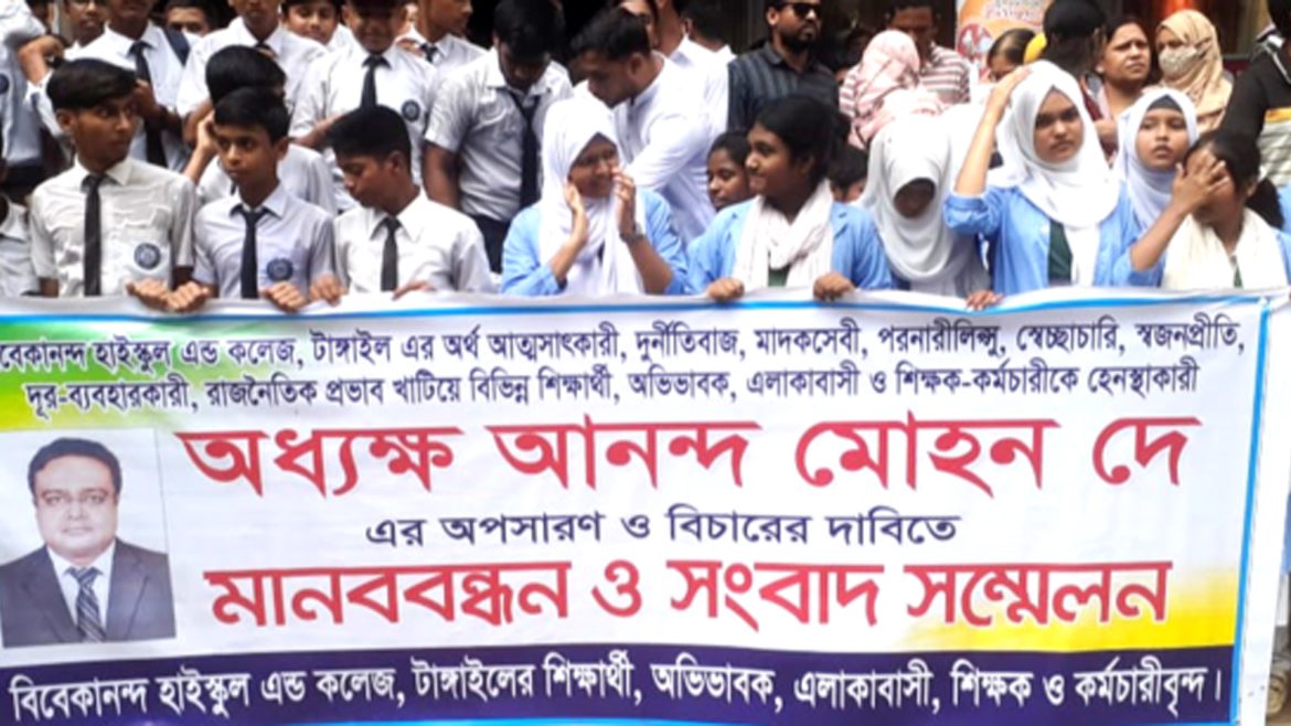 টাঙ্গাইলে অধ্যক্ষের অপসারণের দাবিতে শিক্ষার্থীদের মানববন্ধন