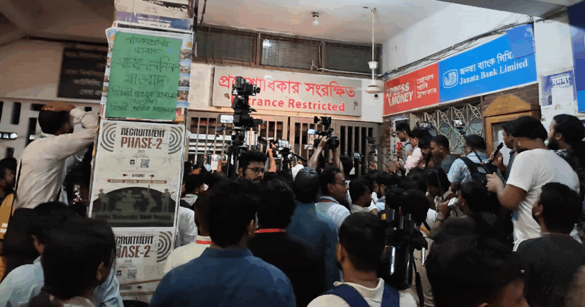 ছাত্রদল কর্মীরা জানান, ভিপিপ্রার্থী সাদিক কায়েম ভোট গণনার সময় উপস্থিত থাকতে পারলে তাদের কেন আটকানো হচ্ছে।