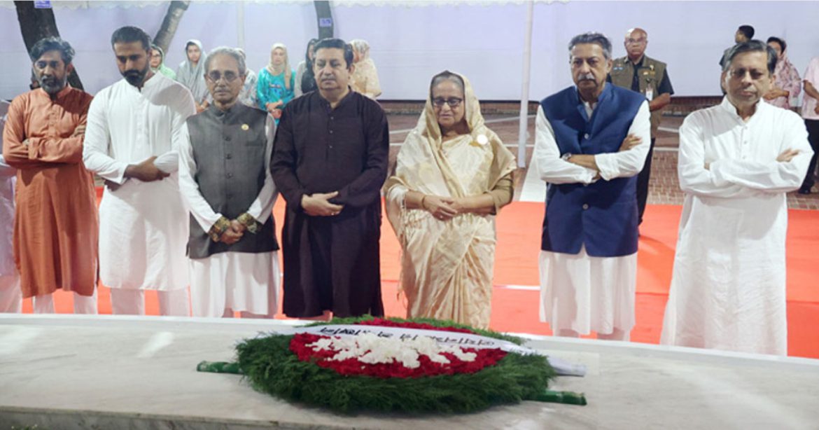 তিনি বঙ্গবন্ধুর সমাধিতে পুষ্পস্তবক অর্পণ করে শ্রদ্ধা নিবেদন করেন। ১৯৭৫ সালের ১৫ আগস্টের হত্যাকাণ্ডের সময় বঙ্গবন্ধু ও অন্য শহীদদের বিদেহী আত্মার মাগফেরাত কামনাও করেছেন প্রধানমন্ত্রী।