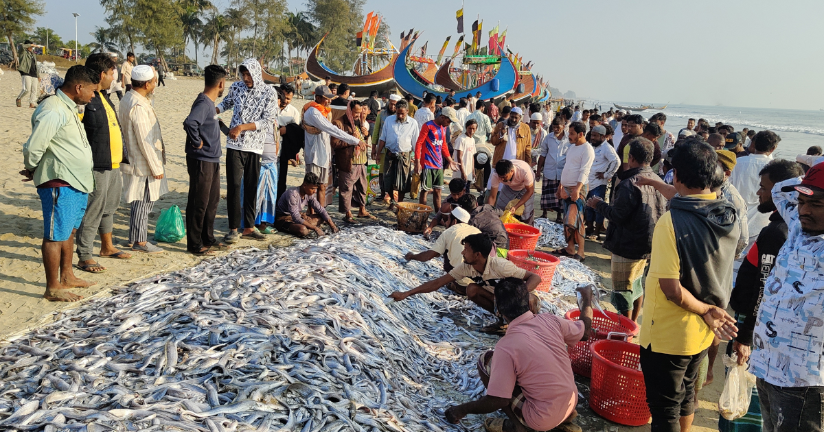 কক্সবাজার জেলার টেকনাফ উপকূলে জেলেদের একটি টানা জালে ধরা পড়েছে প্রায় ১০৯ মণ বিভিন্ন প্রজাতির মাছ, যা বিক্রি হয়েছে প্রায় সাড়ে ৮ লাখ টাকায়। তীরে মাছগুলো নেওয়া হলে তা দেখতে পর্যটক ও স্থানীয় লোকজন ভিড় করেন।
